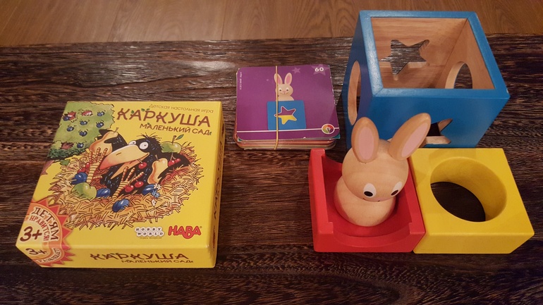 Любимые игры - "Каркуша" от Haba и головоломка "Застенчивый кролик".