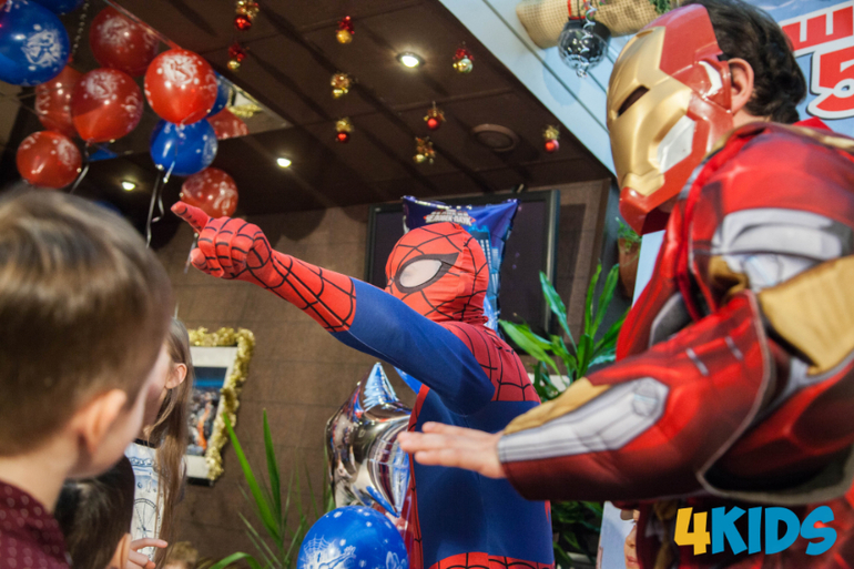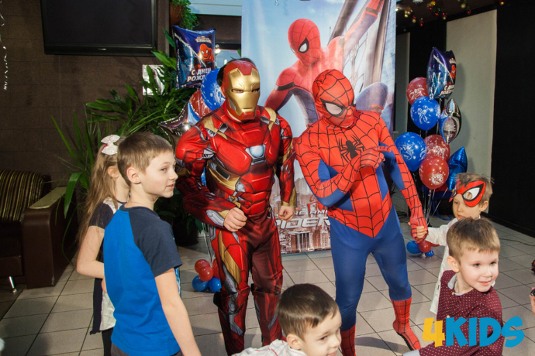 В компании с Человеком-Пауком и Железным Человеком, именинник и его друзья