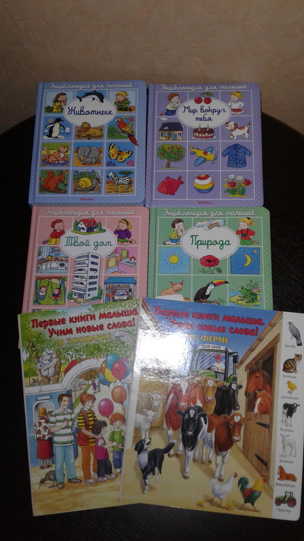 Читать мы начали в 7 месяцев с очень обычных и простых книжек.