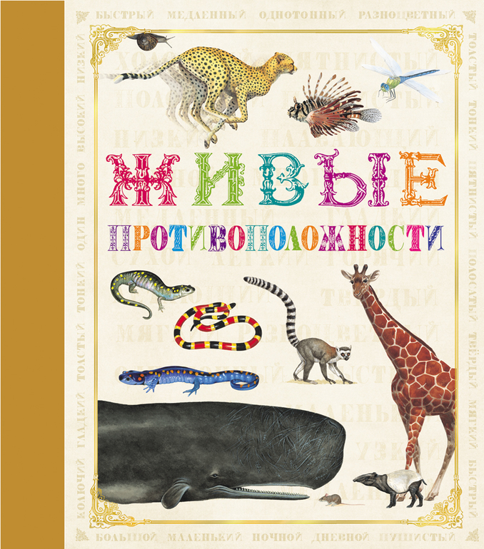 "Живые противоположности" - книга, полная контрастов. На одной странице здесь соседствуют 50-тонный кашалот и крошечная божья коровка, закованный в непробиваемые пластины броненосец и полупрозрачная медуза, стремительный гепард и неторопливая черепаха... Богатая коллекция иллюстраций поможет малышу легко запомнить эти удивительные противоположности и познакомит с разнообразием мира животных.