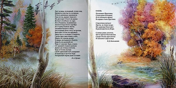 Эта книга только часть прекрасного сборника «Времена года», изданная отдельно. Данный поэтический альбом является воплощением прекрасного: в нём переплетены стихотворения русских классиков об осени с великолепными картинами Владимира Белоусова.