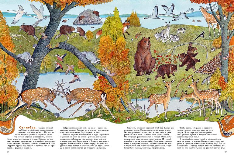 Для знакомства с осенним лесом наших широт идеальна книга «В лесу» (Лабиринт, Озон) авторства Петра Багина.