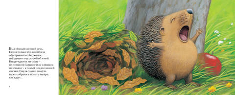 Добрая и милая сказка для самых маленьких. Погожим осенним деньком ежиха с ласковым именем Ежуля обустроила гнёздышко для зимней спячки, но вдруг ей на спину, откуда ни возьмись, упало яблоко. Ну как тут проберёшься в уютную норку?