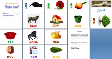 Подготовила для Андрюшки карточки - «Первые слова малыша». Не звукоподражания типа «ко-ко» или «би-би», а именно слова, самые, что ни на есть настоящие. Как раз сейчас у него начался период активного повторения. Повторяет он почти всё, что слышит. Для карточек слова взяла самые простые, чтобы использовать в качестве речевой разминки.