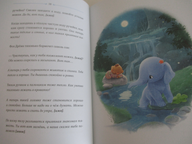 Книга основана на методе гипноза и как говорят авторы совершенно безопасна для детей. Подойдет детям в возрасте 3-5 лет. Читая книгу, я сама была готова заснуть еще на ее середине, а дочка - нет. Каких либо намеков на сон я у нее не наблюдала. Хотя все индивидуально, кому то поможет побыстрей уложить ребенка в кровать, а на других детей книга не действует, как умиротворенно не читай и сладко не зевай.