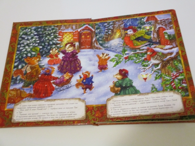 Книга "Новый год в Волшебном лесу" - удивительная по красоте книга с милейшими иллюстрациями. Именно такой должна быть новогодняя книга. Когда видишь такие чудесные иллюстрации, то невольно переносишься в детство. Эту книгу приятно держать в руках и рассматривать малейшие детали иллюстраций на странице. В данной книге содержание второстепенно, все внимание прекованно к иллюстрациям.