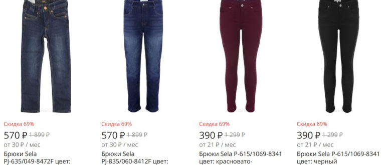 Джинсы и лосины Sela и другие фирмы от 180 руб.