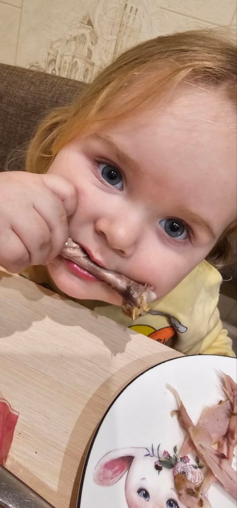 Я ей пюрешки, котлетки, салатики даю. Курочку чищу от косточек. А ей надо куриную ногу целиком🤣