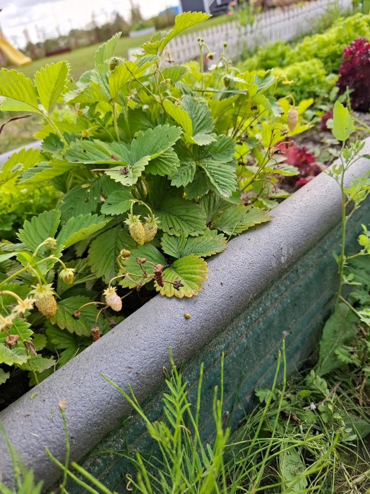 Земляника пока еще есть. Много салата, зелени. Кабачки, перчики. Тыква расползлась, но пустоцветная. В общем, мы довольные