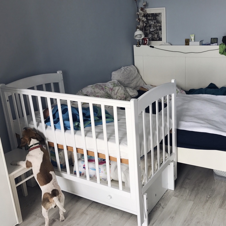- куча брака (хотя конечно может это нам так «повезло») - реечное дно не прокрашено в цвет кроватки (и это хорошо видно, да), и ящик-то не задвигался (полностью муж менял систему направляющих), и стопоры маятника сразу с двух сторон поставить нельзя (то есть если стопор ставлю с одной стороны, то с другой стороны дырочки для вставления стопора не совпадают,в итоге кроватка конечно не качается, но я двинула кровать с незакрепленного конца и сорвала резьбу винта, который держит кроватку над ящиком)