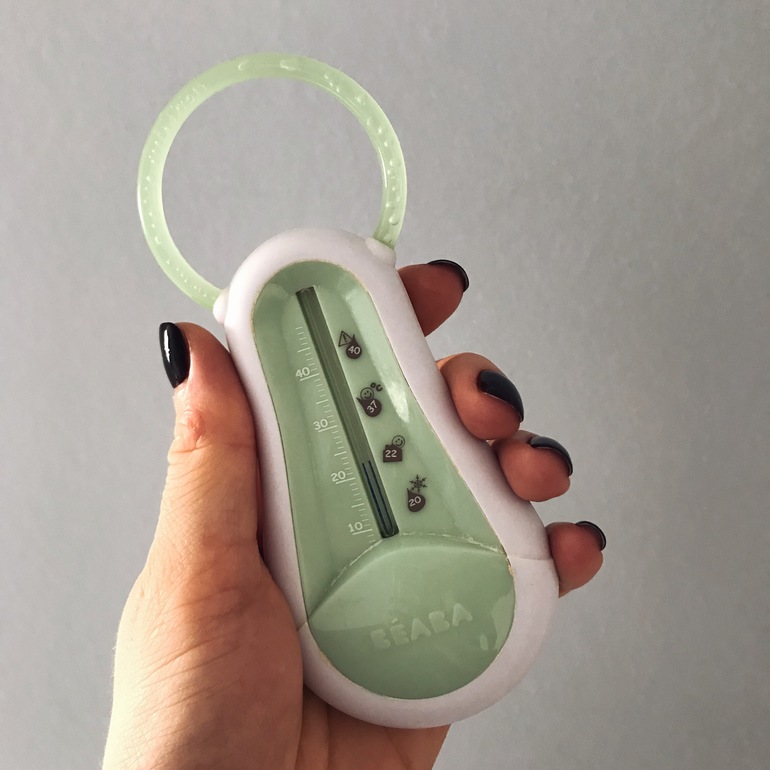Градусник для воды у нас Beaba. И мне он ужасно не нравится! Сложная система измерения температуры воды, просто положить в ванночку и подождать нельзя, нужен обязательно поток воды через градусник (или под кран ставить или в ванночке его долго бултыхать).