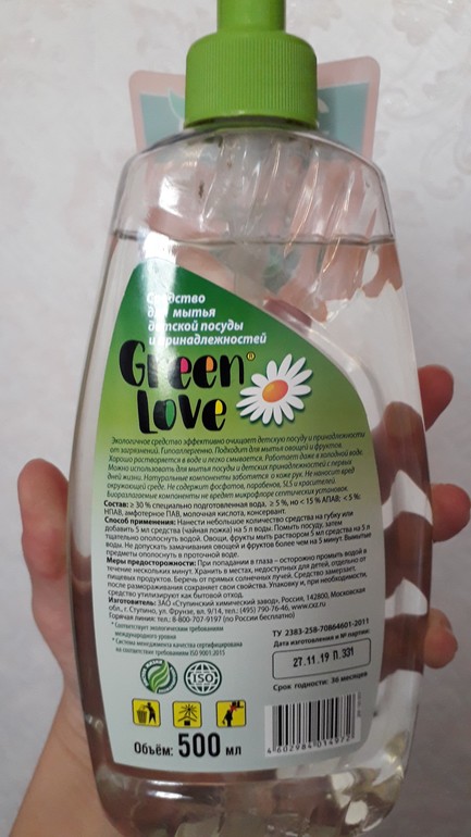 Затем я обратила внимание, конечно же, что средство гипоаллергенно. Применять можно с первых дней жизни, эффективен в холодной воде, и, ВНИМАНИЕ: можно даже мыть овощи и фрукты! Вот до чего дошел прогресс!