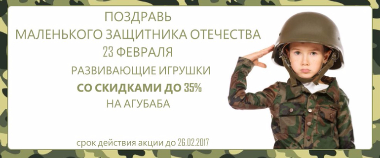 Заходите на сайт и выбирайте подарок вашим юным защитникам. Скидки до 35%.
