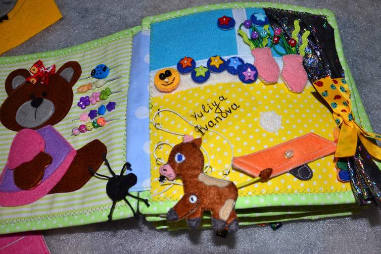 Добрый день. Хочу показать свою развивающую книжку по 11 стихам А. Барто. Около 80 съёмных элементов. Есть канал на Ютуб " Мастерская чёрный кот", где можно увидеть как пользоваться и играть книгой. Книга в наличии.