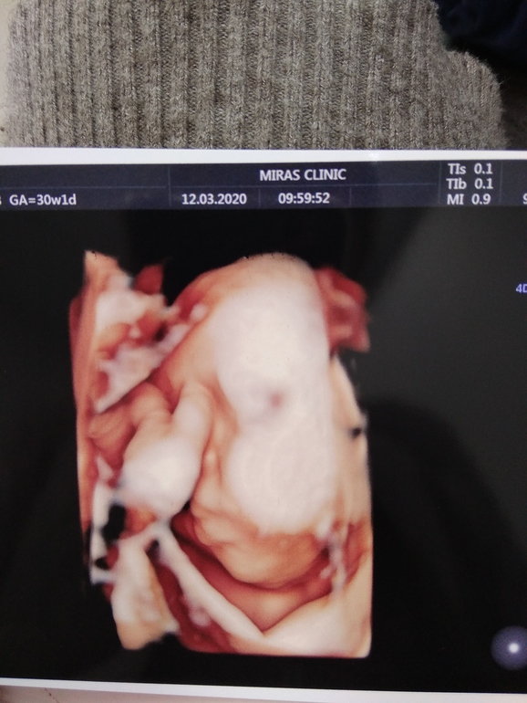 Прошли мы 3 скрининг,все в норме ,но узист сказал контроль желудочков в мозге через 2 недели 9мм они.В остальном сказал ребёночек богатырь 1,950 кг все показатели в норме,у меня тоже все хорошо тьфу тьфу шов норма шейка и плацента тоже.Ну и фото на память моего щекастого мальчишки