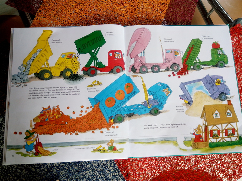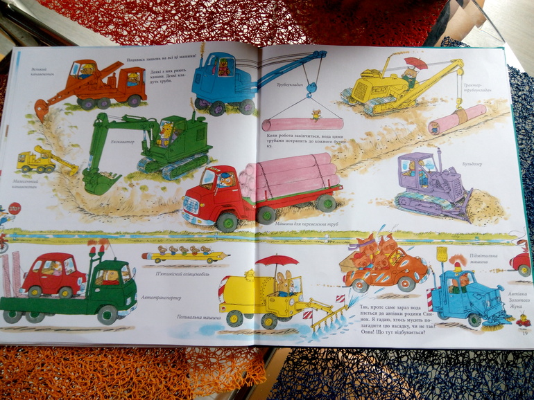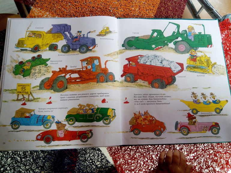 Сначала иллюстрации показались бледными, но сейчас уже привыкли! Еще сомневалась, поймет ли сын где выдумка, а где реальный транспорт! Но, с этим проблем не возникло)) Книга у нас уже месяц, хитом она стала на 3й день! И на горшке он с ней сидел, и спать с собой нёс, и спросоня к ней бежит ,,где про яминки???,, (где про машинки)