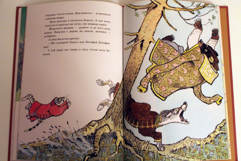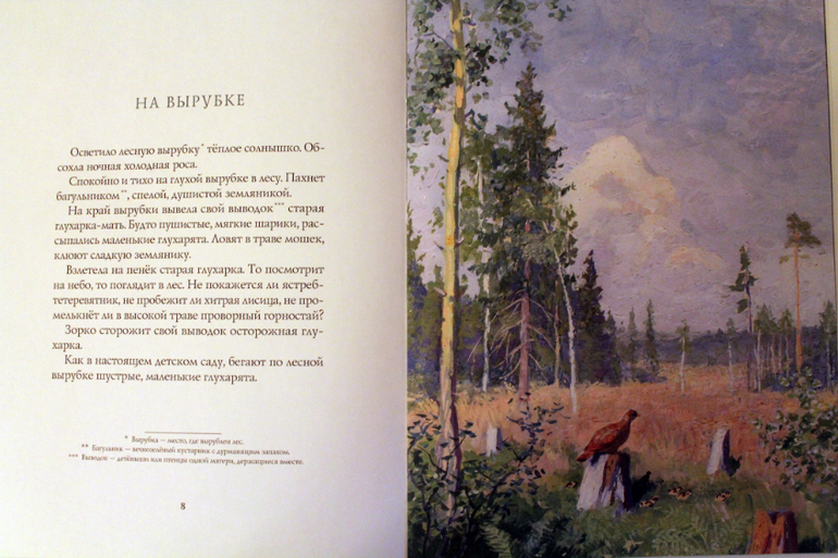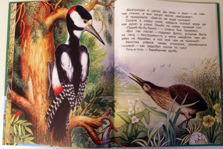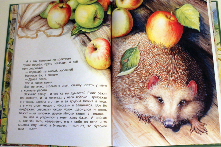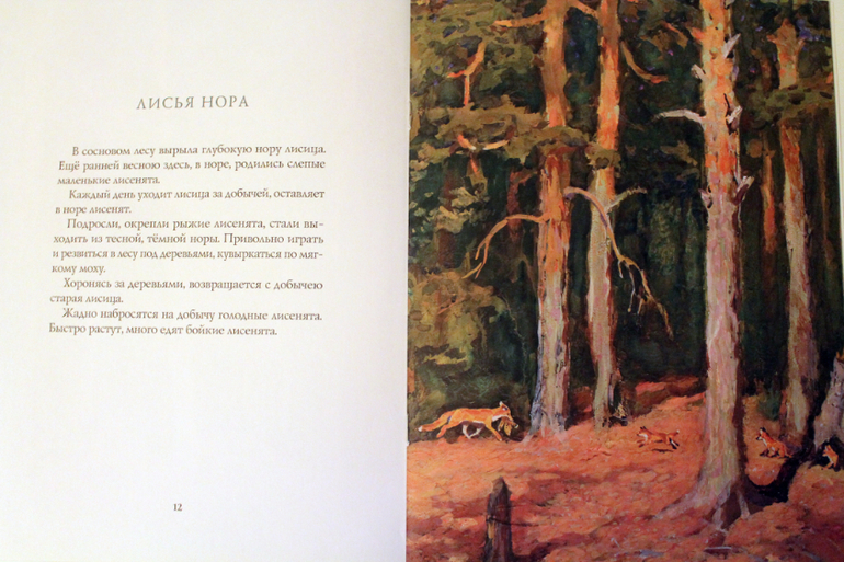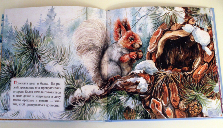 "Русские сказки о природе" Сладкова покупала в первую очередь из-за содержания: некоторые сказки, к сожалению, очень трудно найти в других сборниках. Иллюстрации не на каждой странице, много разворотов и вовсе без них, формат большой, тяжеленькая). Слушаем пока не больше одной сказки за раз.