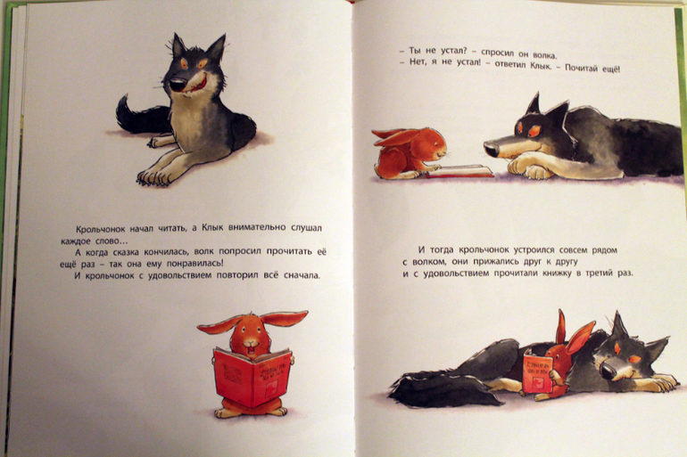 Следющие две книжки из серии Книжка-улыбка зачитаны у нас до невозможности! Софи постоянно просит "Почитай мне книжку!". Волк Клык - очаровательный персонаж, конечно! Ну как к нему не проникнуться симпатией за такую-то любовь к чтению?!