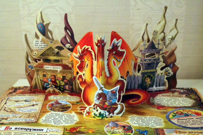 "Богатыри" изд-ва Лабиринт взяла без раздумий и не прогадала! Дети часто приносят полистать-почитать). И ведь про богатырей и Древнюю Русь для таких малышей, как Софи, пока достойной альтернативы практически нет. А тут и раздвигающиеся странички, и огромная панорамка - всё, чтобы привлечь внимание ребенка! Кстати, сам Горыныч нереально харизматичен))).