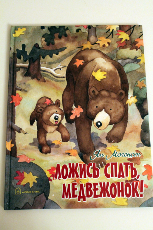 А вот и еще медведи! "Ложись спать, медвежонок!" заприметила еще в анонсах. Сама история в духе "Медвежонка" Уивера, и "Почему ты не спишь?" Уоддела (тут уж вообще сюжет практически один в один!). Любознательный мишка никак не мог улечься в спячку и придумывал все новые и новые забавы. Кстати, форзац детей тоже заинтересовал: с осенним настроением опавшей листвы и характерными косолапыми следами).