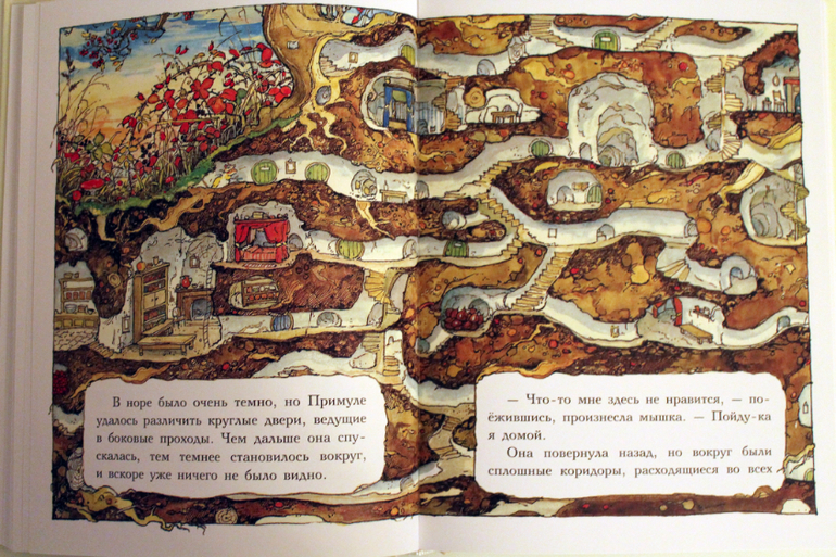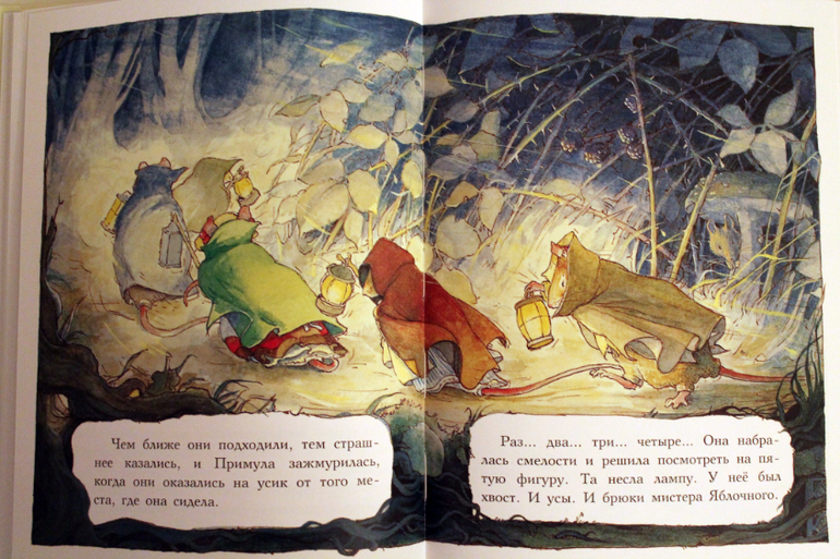 Сборник Барклема "Сказки и истории Ежевичной поляны" случайно нашёлся в Читай-городе. И ведь надо было дождаться, пока тираж закончится! А покупать истории по отдельности ой как не хотелось... Одним словом, отличное издание! А уж иллюстрации с массой мельчайших деталей можно рассматривать и рассматривать! Домики мышат сказочно прорисованы вплоть до книжных полочек, подушечек на уютных кроватках). Вообще очень атмосферная книжечка: хочется закутаться в плед, поставить рядышком чашечку ароматного чая и отправится в путешествие вместе с очаровательной Примулой, Леди и Лордом Лесной Мышью и другими обитателями Ежевичной поляны...