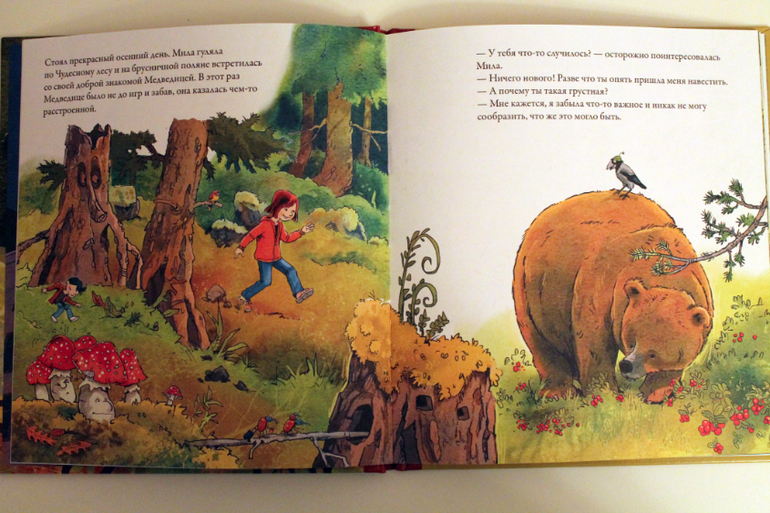 Ох как похоже на Мики и Софи!!! А лес и в правду чудесный: даже деревья, камни живые, со своим характером. Так еще и надо найти маленького братика Милы на каждом развороте ;)