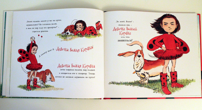 "Девочка Божья Коровка" (Дэвис) была принята детьми на ура). У Лулу и ее пса Бинго день выдался полный приключений, и всё благодаря её фантазии! "Лулу знала, что она вовсе не маленькая. Лулу подумала о 59 буквах Л, которые она нашла, о муравьишках, которым она помогла. Она не испугалась акулы и построила отличную крепость. Она не упала и прошла по стволу поваленного дерева. Все это она сделала сама!" Детям-то понравилось, а вот у меня создалось двойственное впечатление: по сути, ощущение одиночества Лулу не покидало меня на протяжении всего рассказа...
