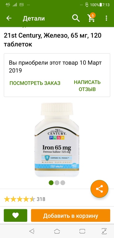 Врач сказала что гемоглобин норм у меня а железо дефицит. Я куплю на месяц эти таблетки, но закажу с iherb другие, просто 20 дней будут идти