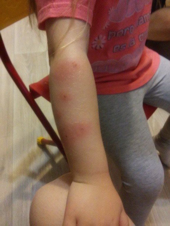 Бедняжечка ((( У меня в детстве такие же шишки были(( Да и дочка плохо реагирует на укусы