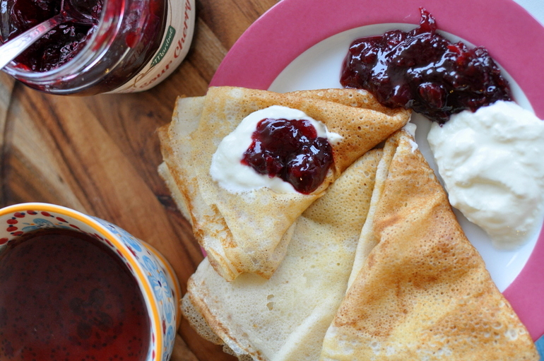 На прошлой неделе решила изменить моим заварным блинам и попробовать новый рецепт. И оказалось, что рецепт просто замечательный, домашние сразу заметили разницу и оценили новый рецепт, так что теперь пеку по новому рецепту исключительно. Единственное, меня не устраивает большое количество яиц, буду эсперементировать, возможно перепишу рецепт. А пока так... Кто еще не в курсе- блины получаются супер-тонкие и ажурные ))