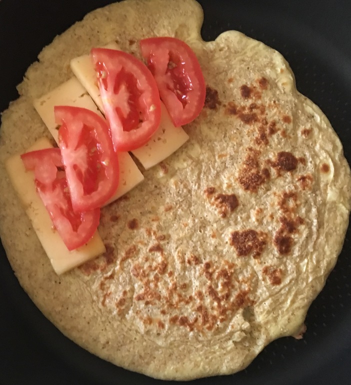 Я всегда делаю на глаз, но примерно это 40-60г овсянки, перемолотой в кофемолке, обязательно с молоком и одним яйцом. Все смешиваю в однородную массу и обжариваю на сухой сковороде с двух сторон. Кладу начинку , складываю блин пополам и ещё прям минуту держу на огне, чтобы расплавился сыр.