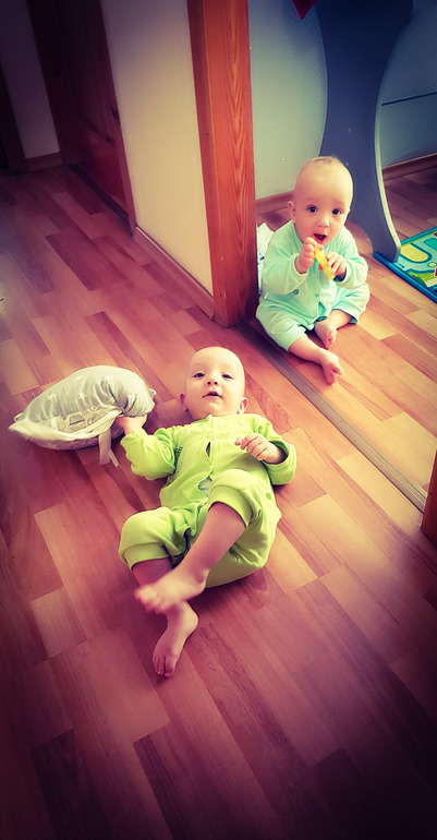 Хмурый муж рассказывает: только за нами закрылась дверь,мальчики проснулись и понеслооось... пока он накладывал им покушать, они расползлись в разные стороны. Один выгреб все кастрюли и чуть не разбил ими кафель на кухне, второй оторвал половину шторы от гардины. Пока папа заметал следы, один достал и облизал обувь в прихожей,а второй со смаком отодрал плинтус в кухне. Наконец, папуся усадил их кушать! Через 5 минут оказался заплеванным кашей, а еще и пол,и стены, досталось даже стоящим вдалеке кроваткам😁 пока после еды умывал одного, второй вытер свою мордашку об плед🐽 пока смывал остатки еды со второго, первый перевернул шкафчик с игрушками в своей комнате.