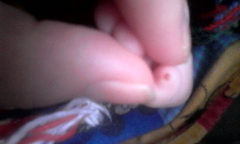 Мамочки и не только...помогите разобраться ,моей дочери 2 месяца на мизинчике правой ножки вылезла какая то хрень вчера я её не видела а сегодня когда переодевала заметила