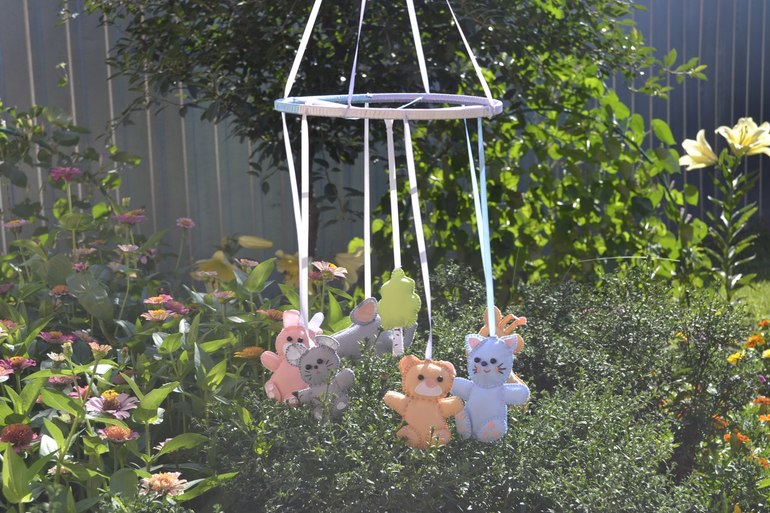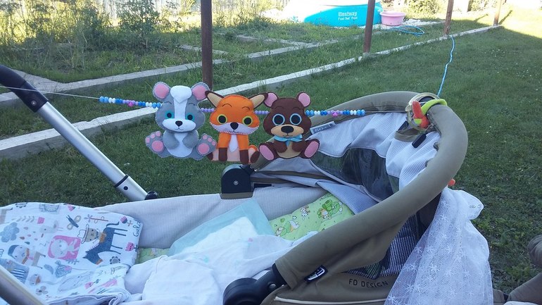 Она делает гирлянды над коляской. Вот у моего Ромки какая. Ну еще и игрушки. Все выкладываю.