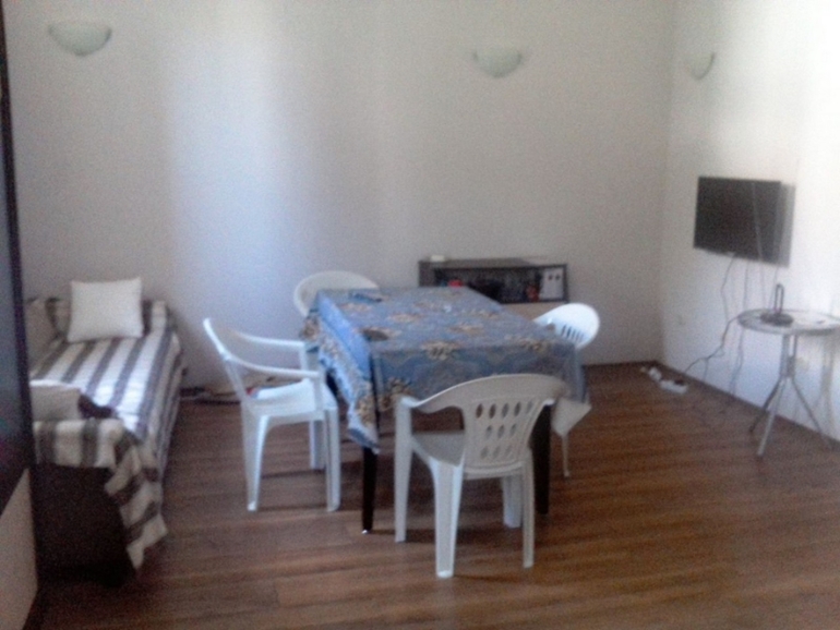 Представляет собой - просторное помещение с кухней, есть двуспальная кровать и раскладной диван. В ванной -душ кабина.