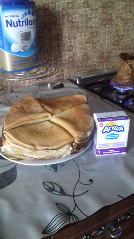 Сегодня обнаружили в холодильнике просроченную Агушу,к слову сказать,наша Вероника ее не жалует,возник вопрос,что делать с продуктом,выбрасывать жалко,а отдавать нельзя-просрочка.Решила я испечь из Агушки блины и вот что получилось