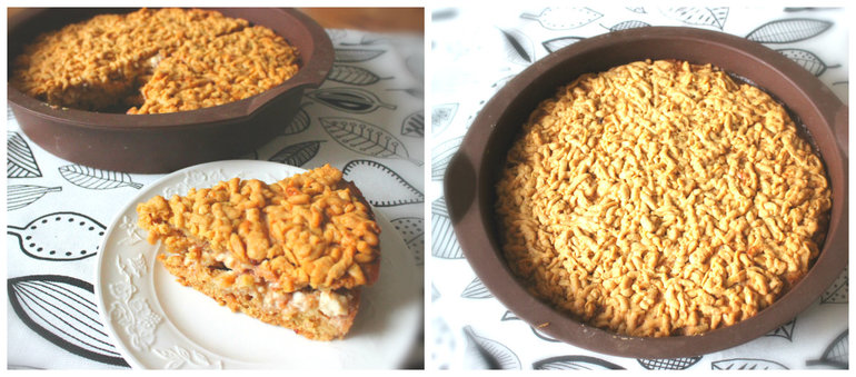 Убираем пирог в разогретую до 180 градусов духовку, выпекаем до приятного золотистого цвета около 25 минут.