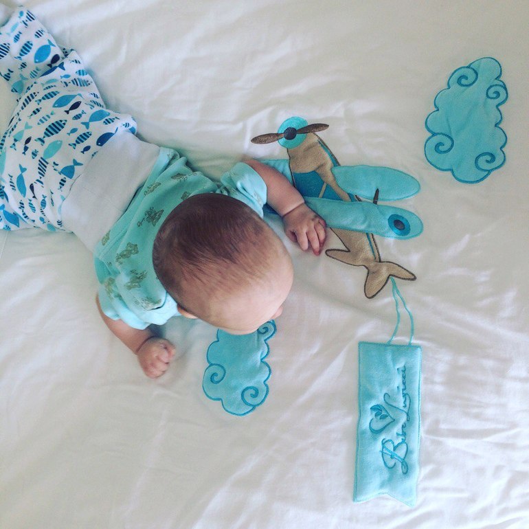 Я решила взять малышу постельное белье из бамбукового волокна, чтобы оно лучше дышало и было приятным к телу. Выбрала комплект с авиатемой от Bebe Luvicci. Он такой классный! В комплект входит: одеяло, подушка, наволочка, пододеяльник, простыня и бортики! Бортики и простыня рассчитаны на стандартную детскую кроватку до трех лет (у нас Галдынян, подошло идеально). Белье очень приятное к телу, малыш под одеялом не потеет, и оно, кстати, просто невесомое! А еще белье хорошо выдерживает стирки, а стирать приходится достаточно часто - ну вы знаете эти детские аварии