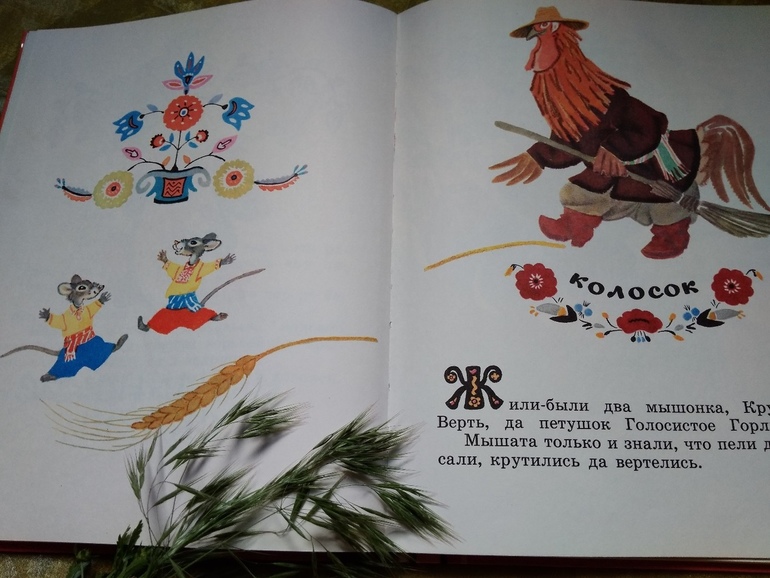 В книге с Рачевым самые любимые, многократно перечитанные сказки - Колосок, Крылатый, мохнатый да масленый, Как коза избушку построила, Рукавичка (лично мне надоевшая до смерти вместе с теремками и горшками для той же надобности)