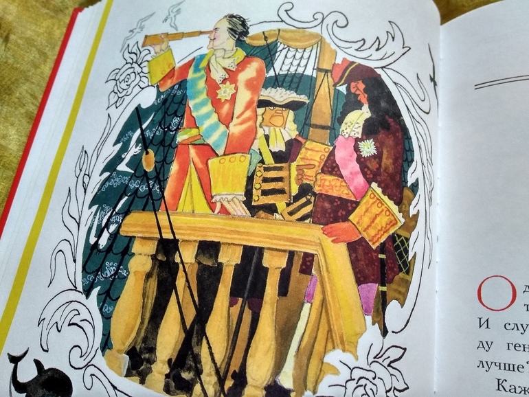 Здесь семь сказок, три из которых в пересказе А.Нечаева (в показанном выше сборнике отсутствуют), а четыре в пересказе М.Михайлова. Все сказки о временах Петра Первого, царь фигурирует во всех сказках, кроме одной - самой последней. Даже Каша из топора, в которой по памяти детства, кроме старухи и солдата, никаких других действующих лиц, а уж тем более царей не было, тут рассказывается совсем по-другому. Такой вариант я читала впервые. Все сказки о смекалке, хитрости, выносливости, ухватистости и доблести русского солдата. Сборник ярко и декоративно иллюстрирован, рисунки на каждой странице очень удачно расположены, благодаря чему текста на страницах немного, строки с крупным шрифтом короткие, и книгу очень удобно читать неуверенным читателям-младшеклассникам.