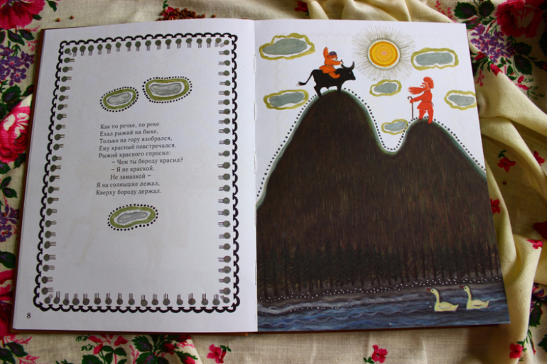 Вся потешка у художника на рисунке, читаешь, пальчиком дитю показываешь. А слегка "умопомрачительные" рифмы изображены с таким юмором, что понимаешь - шутка прям прибаутка. И не сомневайтесь, составители книги были в здравом уме и светлой памяти.