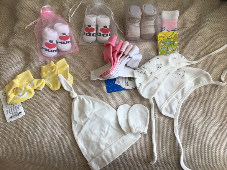 Шапочки, носочки, антицарапки...шапочек наверно больше не буду брать так как многие пишут что не пользуются вообще ими, антицарапок тоже наверно хватит..на многих бодиках они есть...носочек даже у меня столько нет🙈🙈🙈а вот зачем я купила набор пинетки и антицарапки жёлтого цвета...ни одной желтой вещички больше нет...надо будет купить какой нибудь бодик что ли