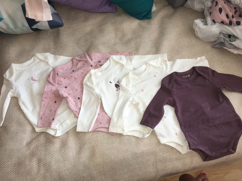 Набор бодиков, размер 53, только не пишите что одевать не удобно такие...очень понравились цвета...не получится одеть, значит не будем одевать😹Хотя я думаю справлюсь уж с собственной дочкой)