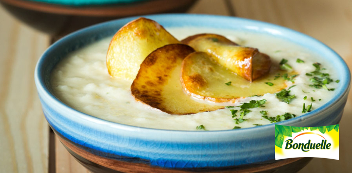 - Суп взбейте блендером. Разлейте по тарелкам, добавьте отложенную ранее фасоль и украсьте картофельными чипсами и мелко рубленной зеленью петрушки. Картинка скачена в интернете.