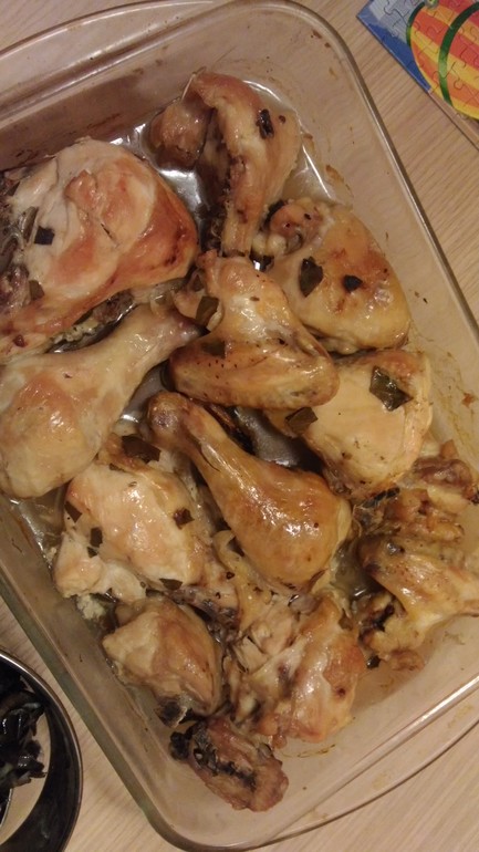 Помыть курицу, натереть ее солью, лаврушкой и давленным чесноком.