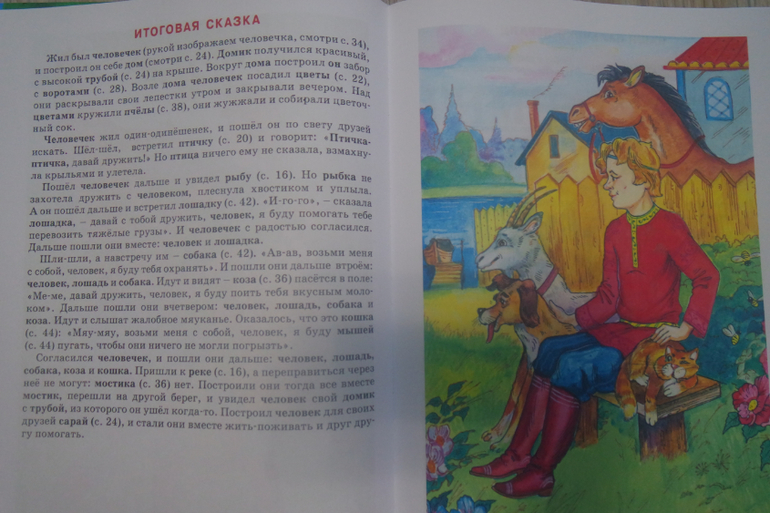 Мне очень нравится итоговая сказка. Мама читает сказку, а ребенок показывает всех персонажей руками. Мы даже в театр теней так пробовали играть.