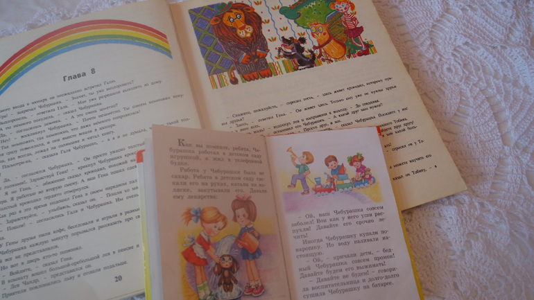 Читали маленькие истории про Чебурашку- очень понравились, но читать большую книгу из моего детства не стали: там "неправильный Чебурашка".