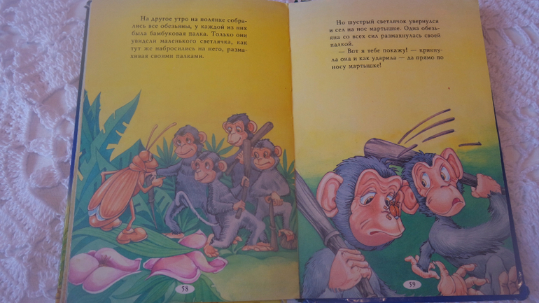 Веселые истории" интересные, короткие, для младшей дочки. И еще одно очень интересная сказка " Саетлячок и мартышка". Нам книга очень понравилась, только авторы не указаны.