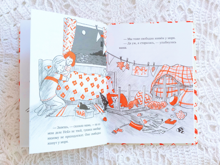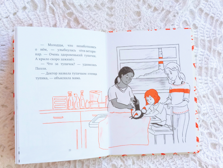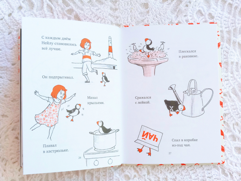 Ещё одна книга маленького формата "Полли и Нейл" . Наша первая книга без цветных картинок...Но черно-оранжевые иллюстрации классные!!! Все ярко, все понятно . На каждой странице много картинок))) Отличный переход для взрослого чтения. Книга идеальна для детей 5-8 лет , подойдёт для самостоятельного чтения. В тоже время . К моему удивлению и счастью Анюта проявила интерес и к ней тоже))) Лиза утверждает, что это самая лучшая книга.... И лакского называет меня " тупик"))). Я не стала объяснять дочке, что это не очень приятно, ведь она всем сердцем полюбила птичку тупика по имени Нейл)))