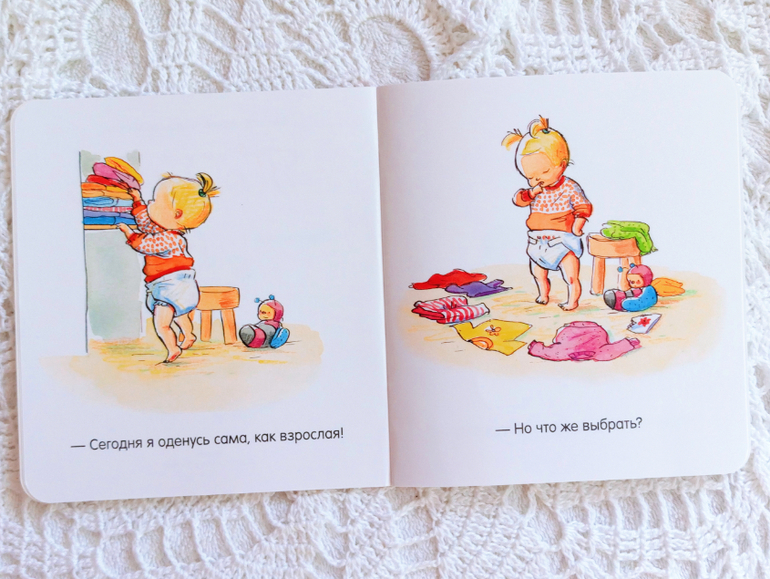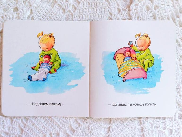 Я даже подумать не могла, что такие малышковые книги, могут её заинтересовать. Сначала Анюта просила читать только книжки про Полину. Здесь очень важно " просила читать "!!!! Наконец-то! Теперь она сама берет книги с полки и просит читать!!!! Выбирает книги про девочек)))